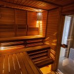 Despite the high temperatures, the heat is not felt so much in the steam room, and all the sweat released immediately evaporates. It is recommended to rinse after the steam room, so if necessary, additional storage tanks for cold water are installed inside. According to doctors, with dry steam, which characterizes Finnish baths, it is not recommended to heat the temperature above 90-100˚C. Because natural sweating does not occur and this can affect a person’s well-being.