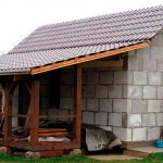 Для обустройства навеса понадобится бетонированная площадка или фундамент, обложенный натуральным камнем. Стойки формируют из камня или металла, а крышу – из листов профиля.