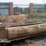 - Размечаем площадку под сооружение, снимаем плодородный слой почвы. В углах выкапываем ямы диаметром 30 см и глубиной 70 см, на дно подсыпаем песчано-гравийную смесь слоем 20 см, трамбуем и застилаем полиэтиленом;